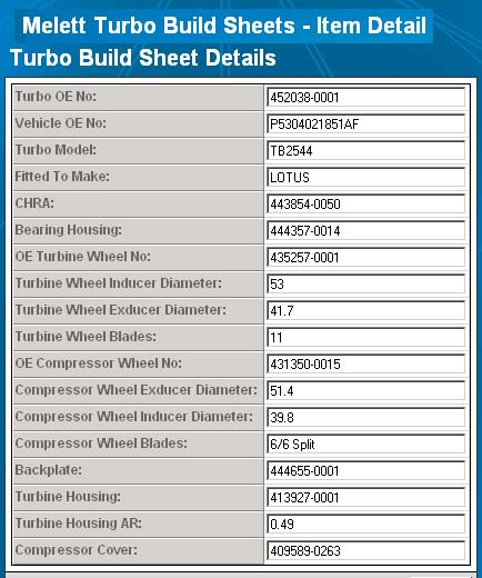 TB2544 (Garrett#) 452038-0001 (Lotus Part Number) P530.4021.851AF