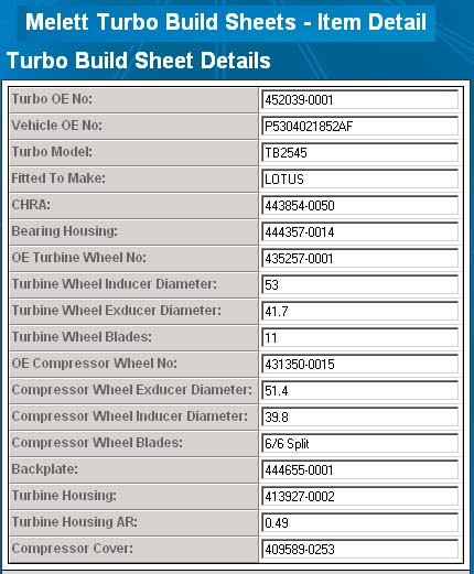 TB2545 (Garrett#) 452039-0001 (Lotus Part Number) P530.4021.852AF