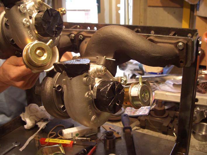 The standard position and mount bracket for the gtr25r waste gate actuators will not work, it has to be re-made and re-positioned. I don't know what pressure the actuators open at, this something to be investigate later.